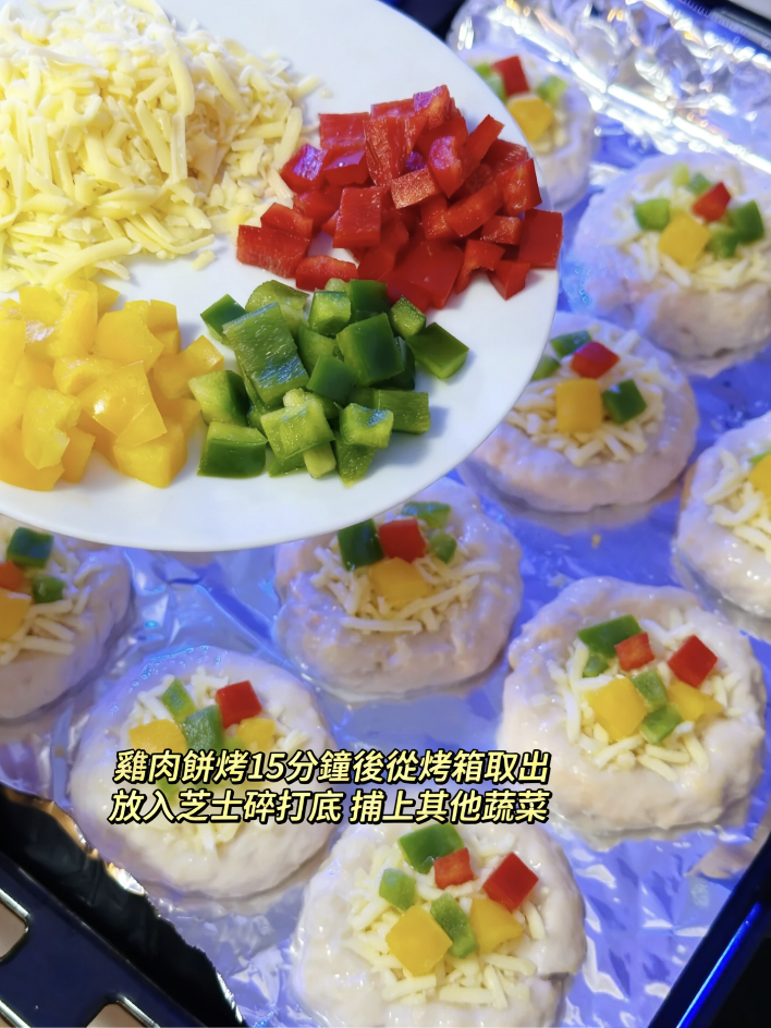準備食材:新鮮雞胸肉、雞蛋、起司碎、蔬菜(推薦西蘭花、胡蘿蔔、南瓜等)