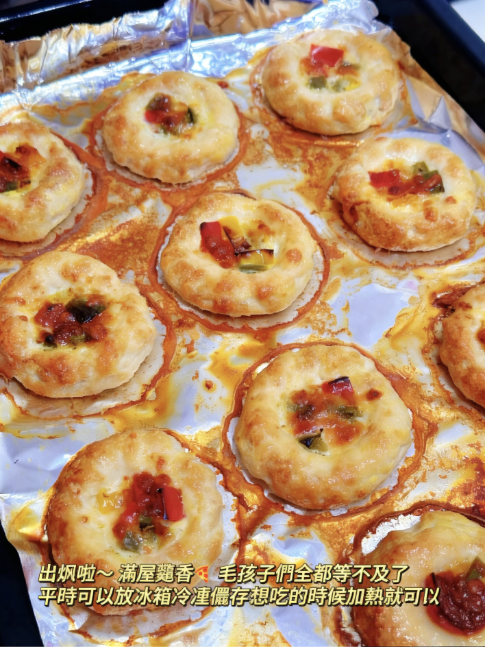 實用貼士:做法就是這麼簡單!不僅操作容易,味道也十分美味。完成後可冷凍保存,食用前加熱即可,方便又省時。烘烤過程中,滿屋都會彌漫著誘人的香氣,毛孩聞到一定會迫不及待!