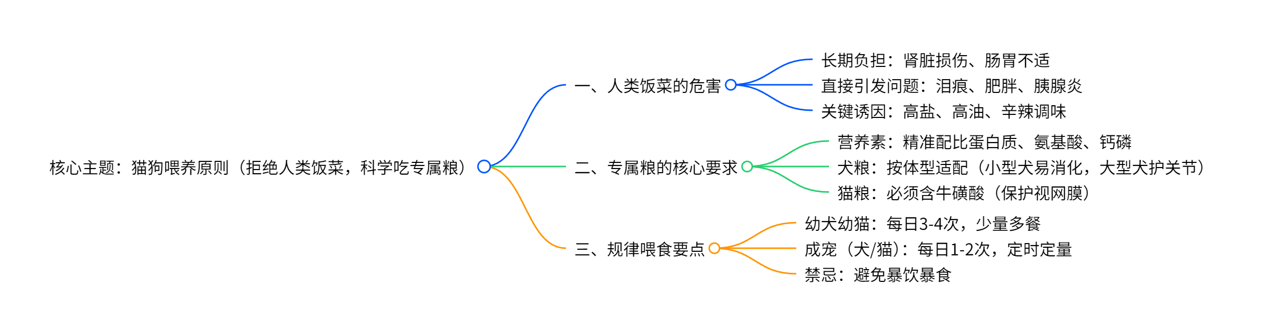 人类饭菜的高盐、高油、辛辣调味,对猫狗的肾脏、肠胃是长期负担,还可能引发泪痕、肥胖、胰腺炎等问题。