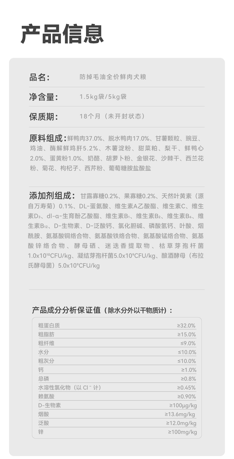 品名賽級防掉毛油全價鮮肉烘焙犬糧