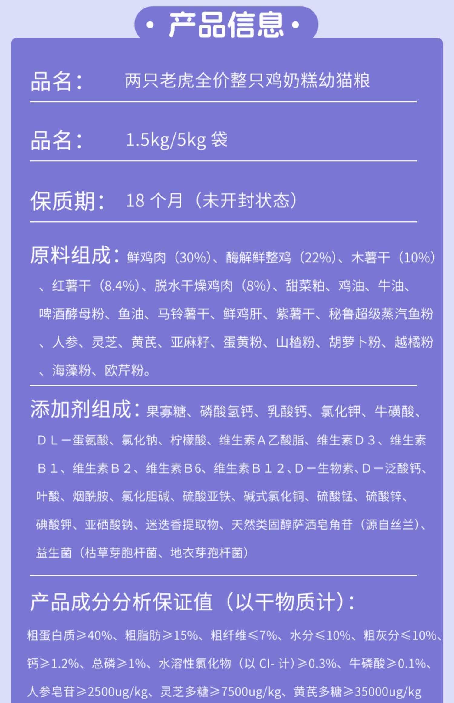 | 食品口味 | 整隻雞奶糕幼貓糧 |
